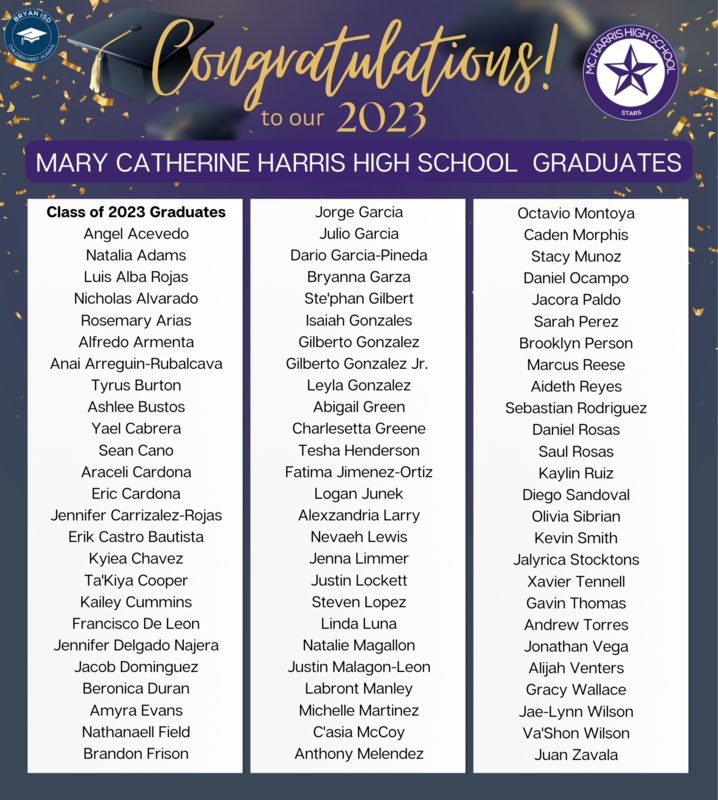 The following ads are appearing in this week's copies of The Eagle newspaper. Each ad will be in the paper on the day of that school's graduation. (MC Harris in the May 25 edition. Bryan Collegiate in the May 26 edition. Bryan and Rudder in the May 27 paper.)